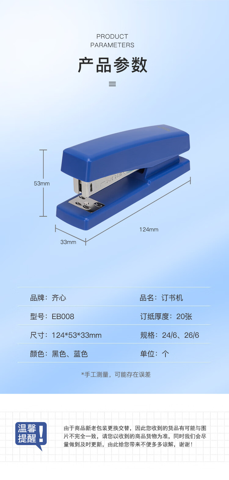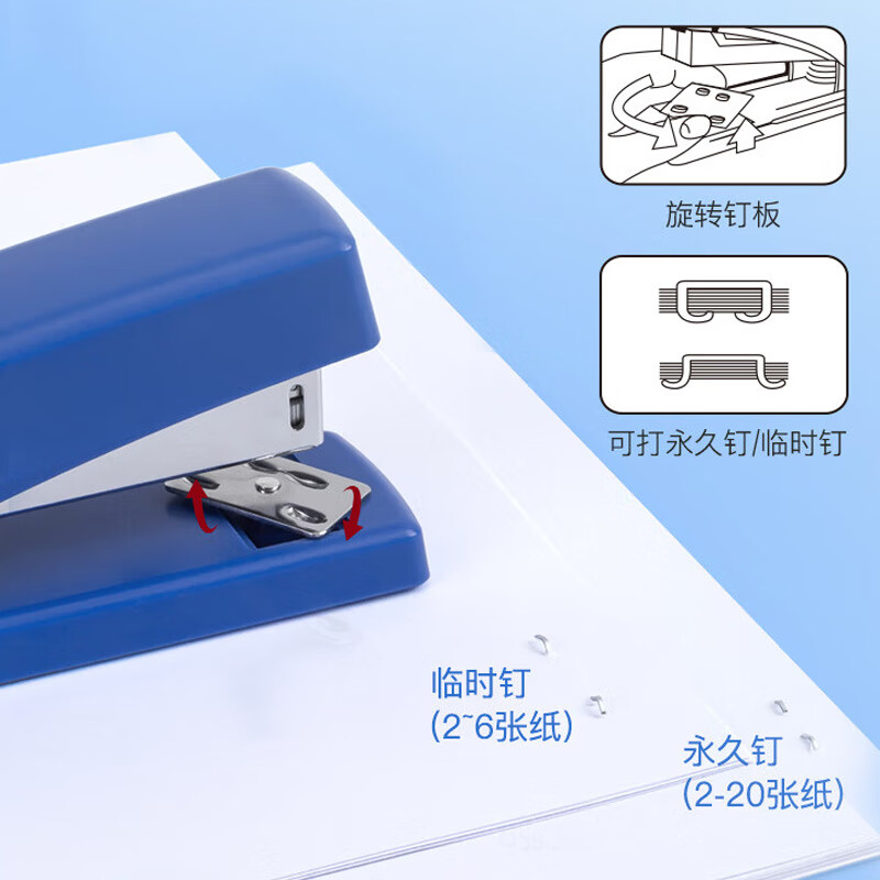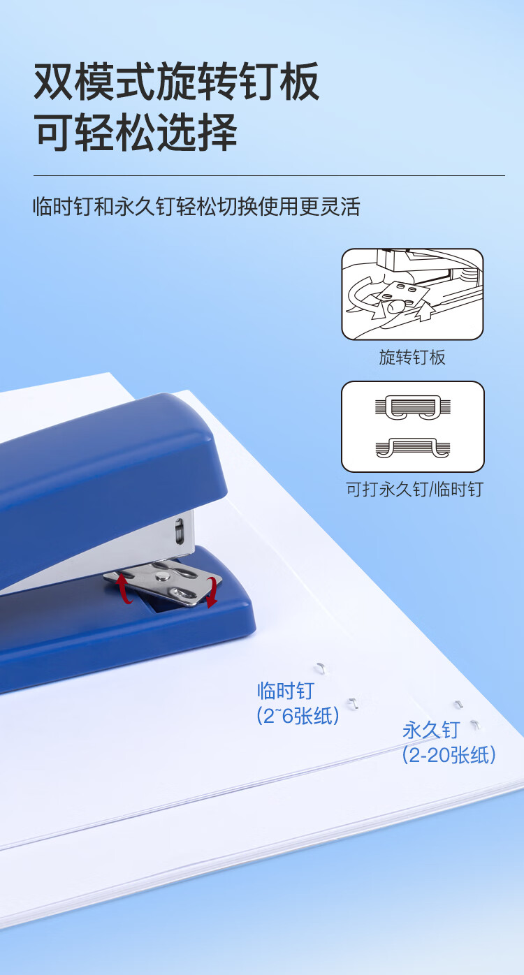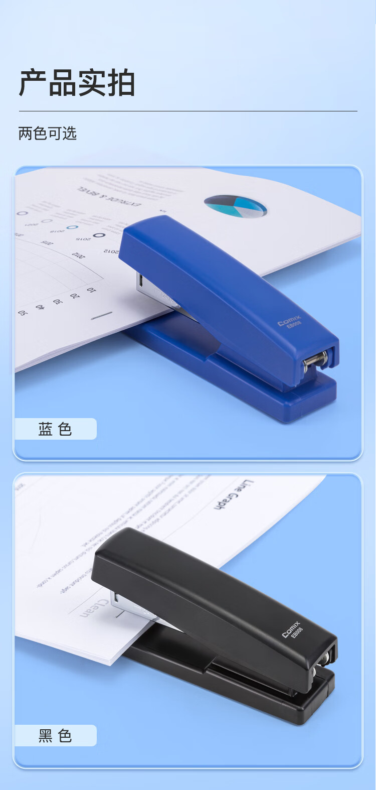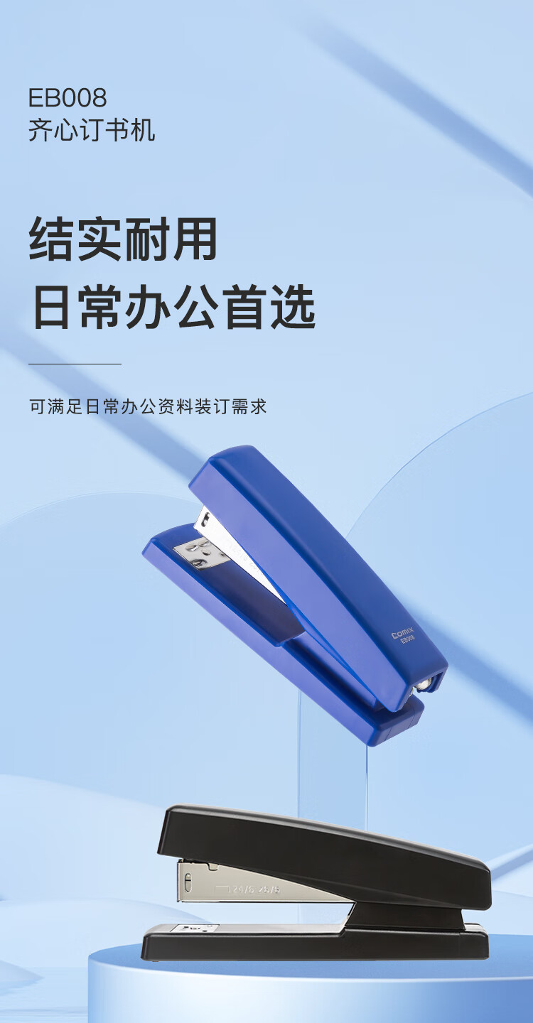齐心(Comix)订书机 商务办公简约双模式旋转订板订书器 黑色EB008