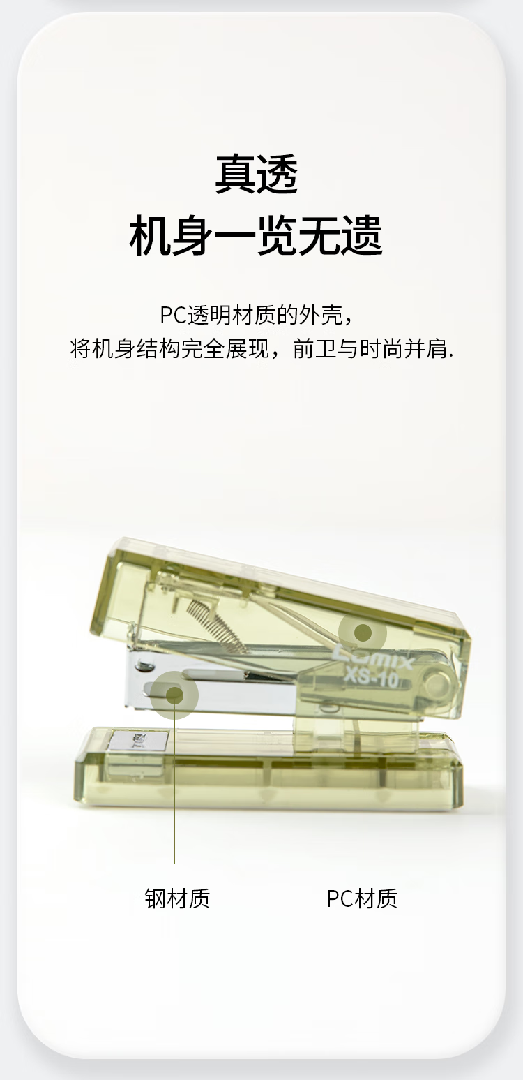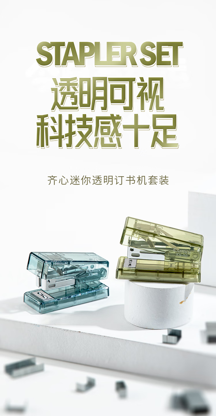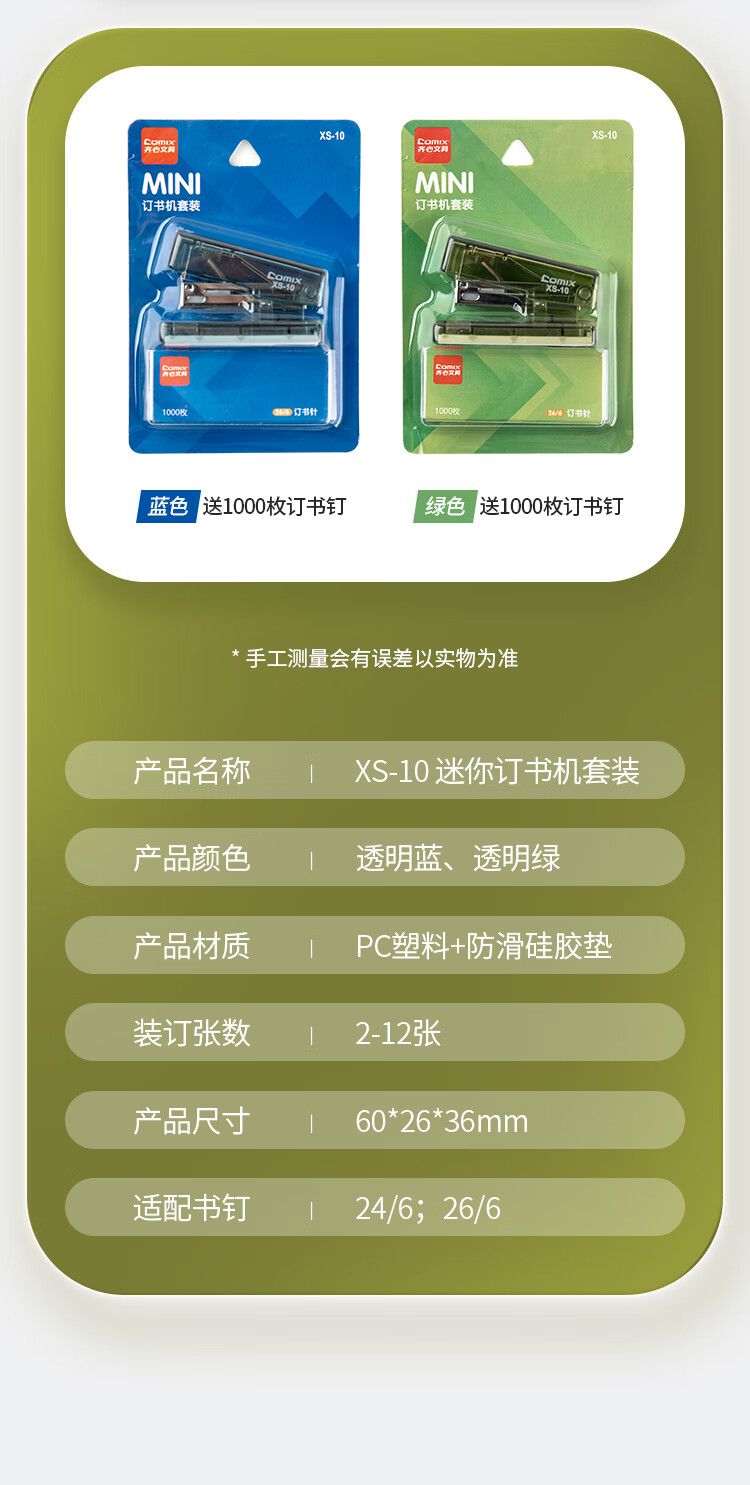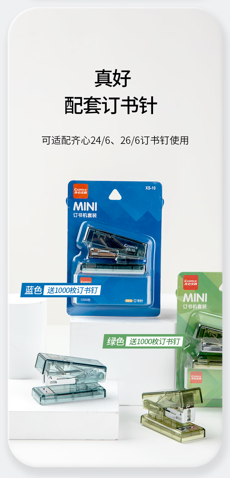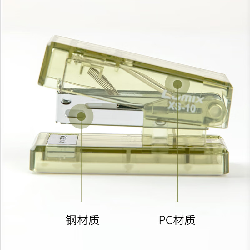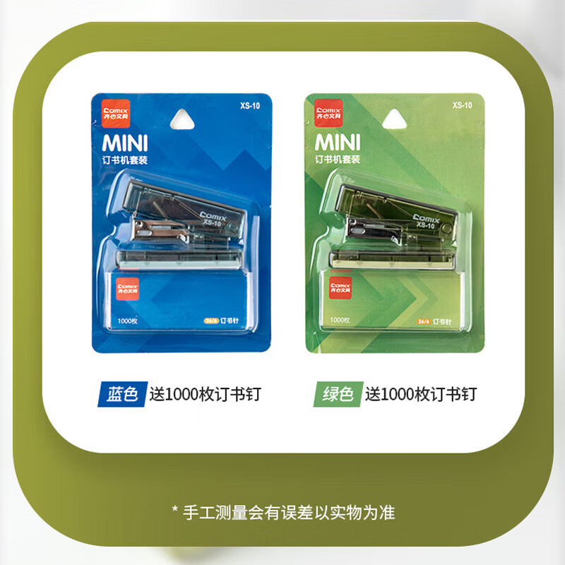 齐心(Comix)迷你学生订书机套装 便捷时尚(订书器+订书钉) 赠送1000枚钉 XS-10透明绿