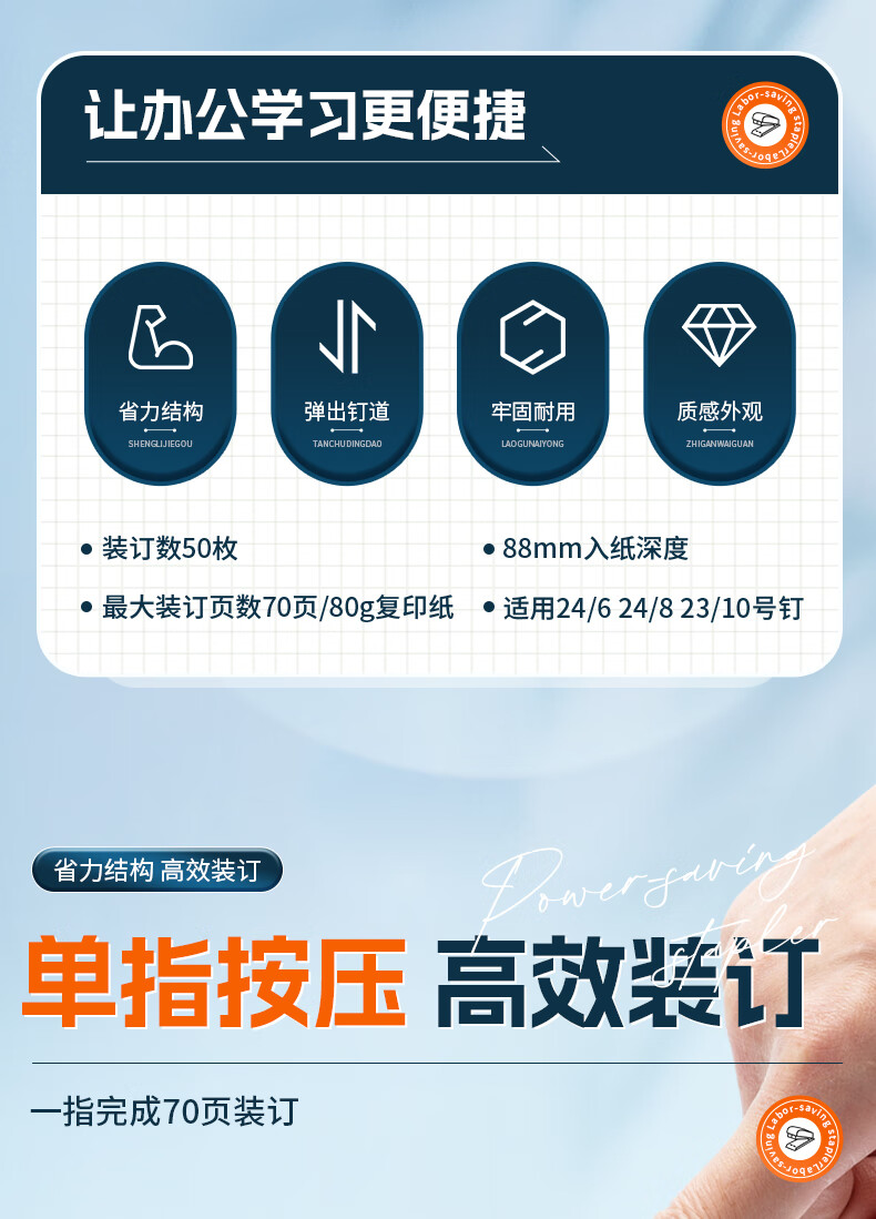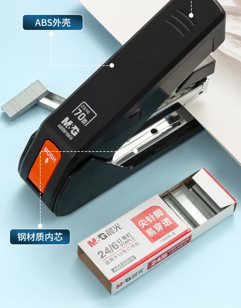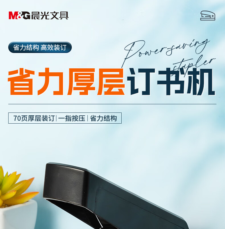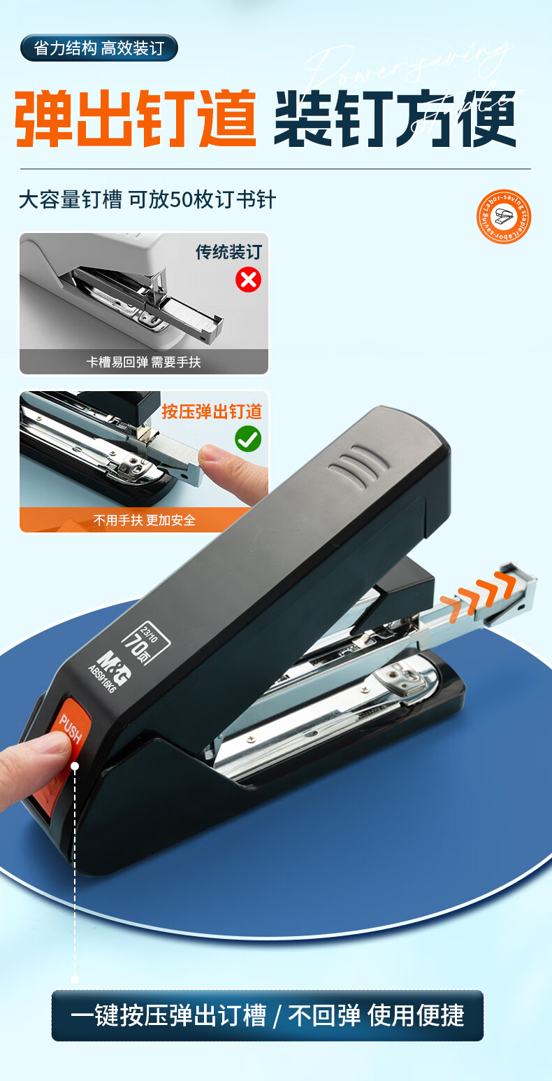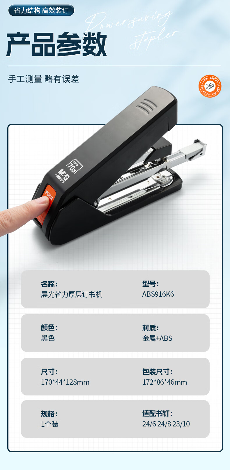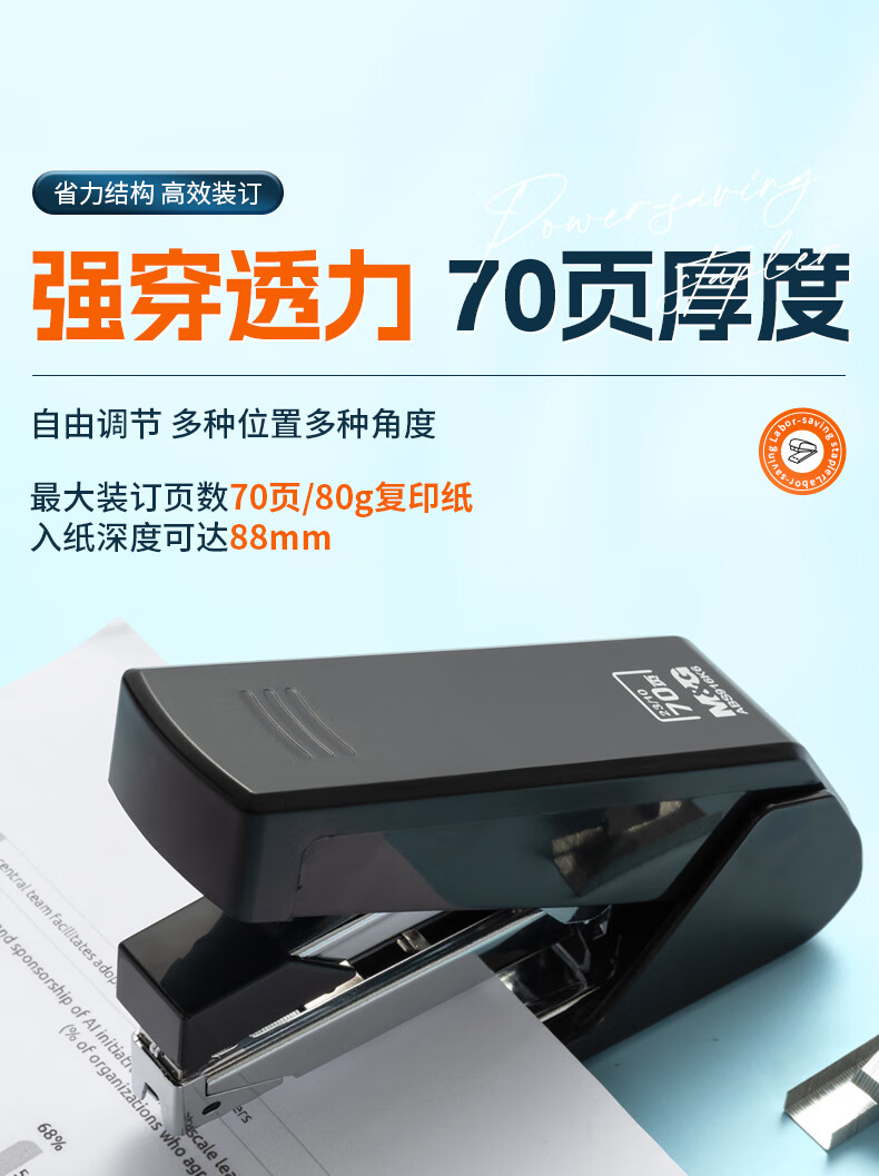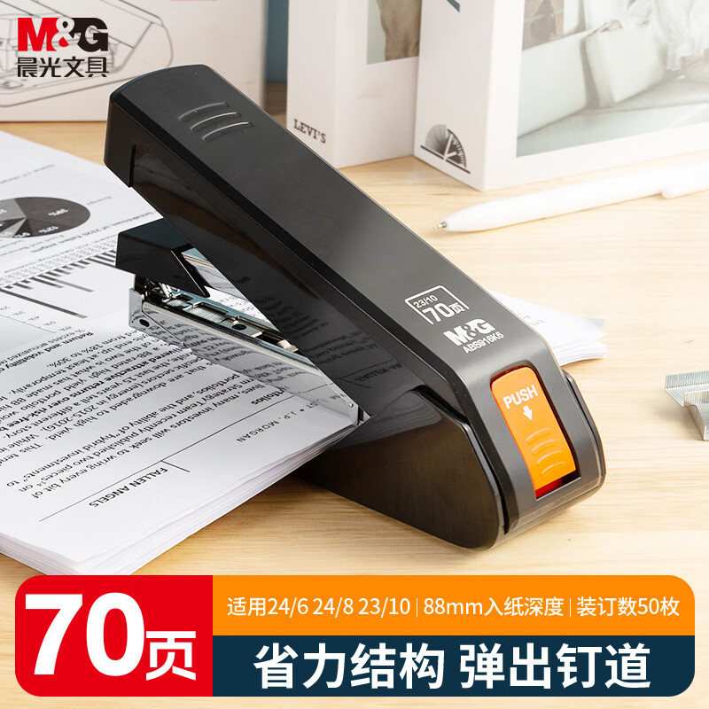 晨光(M&G)70页省力厚层大订书机 重型装订订书器 办公通用试卷文件装订机 黑色 ABS916K6