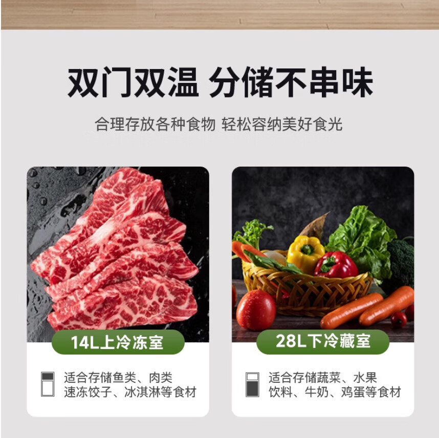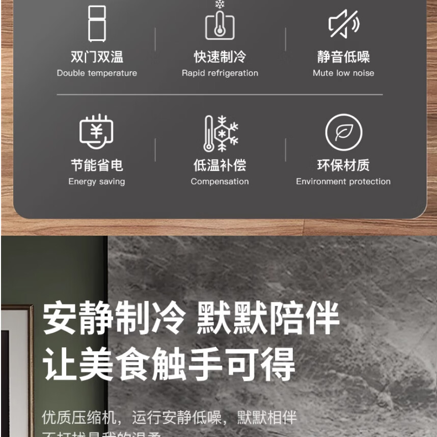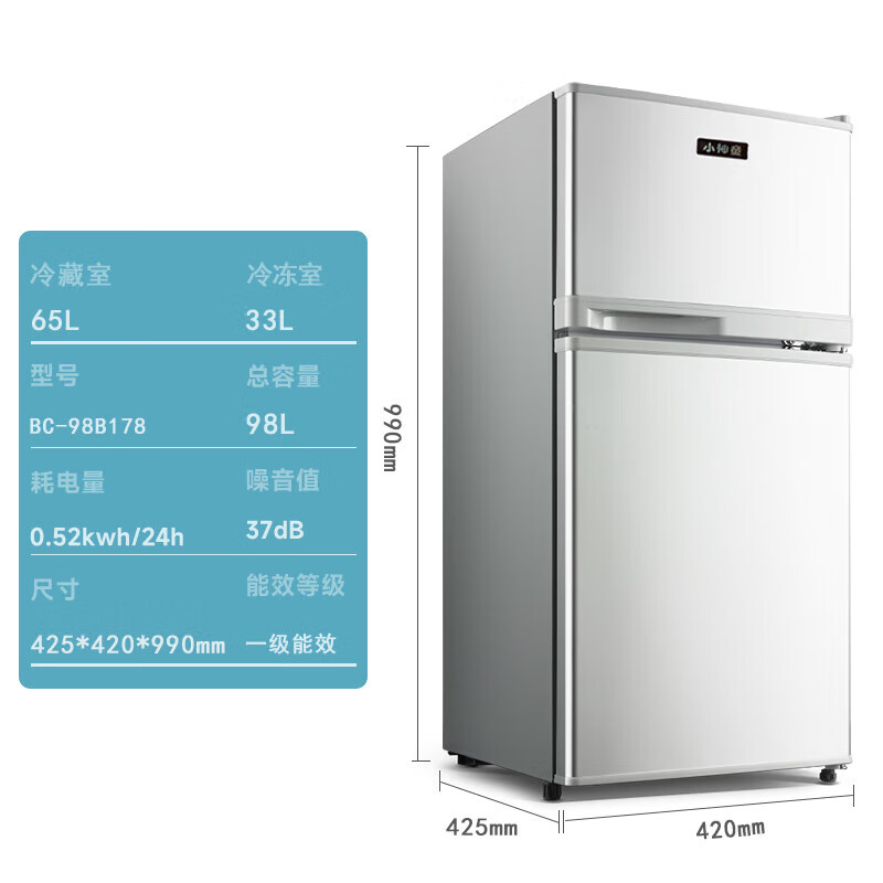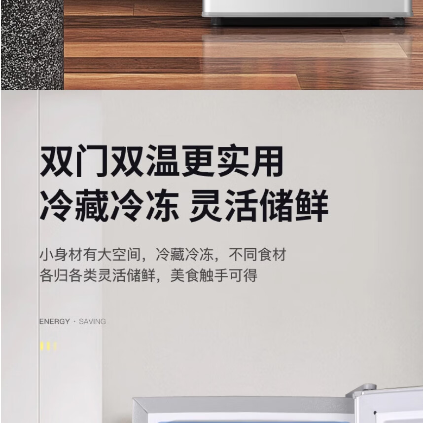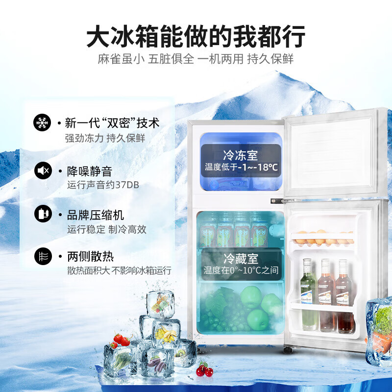 Heiαi一级节能小冰箱家用小型双门出租房宿舍迷你省电冰箱 98L 一级能效/静音减霜【铜管制冷】