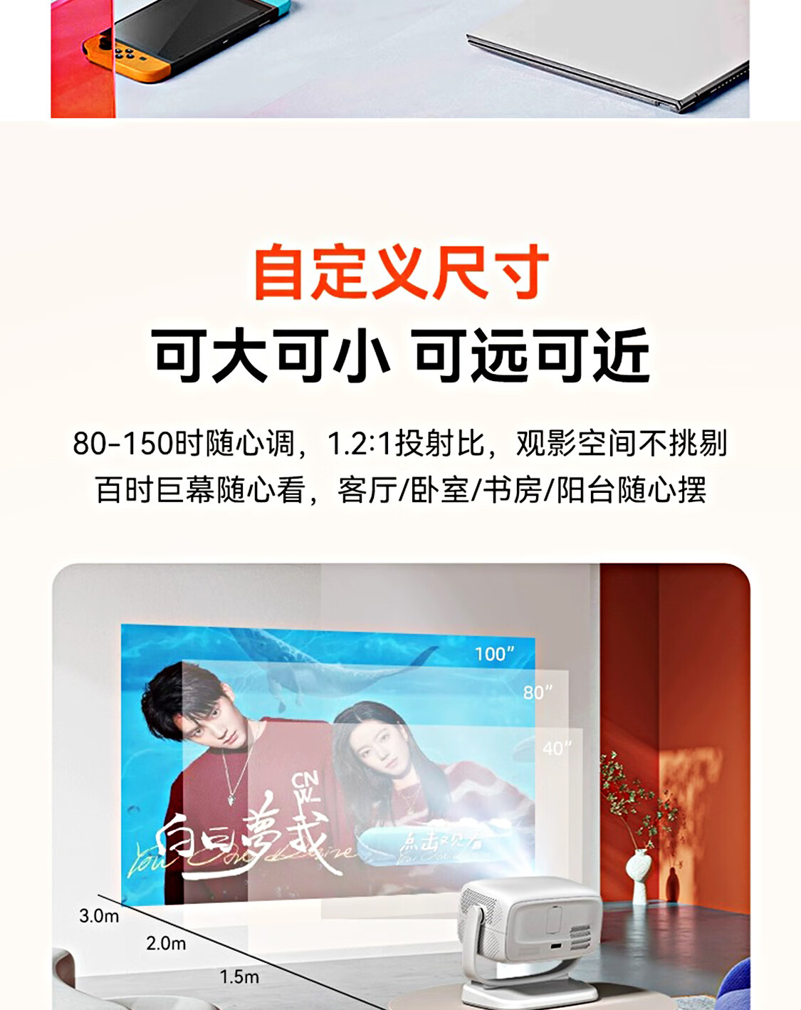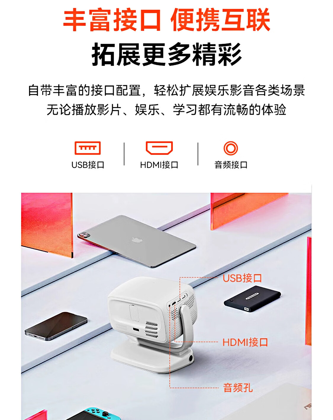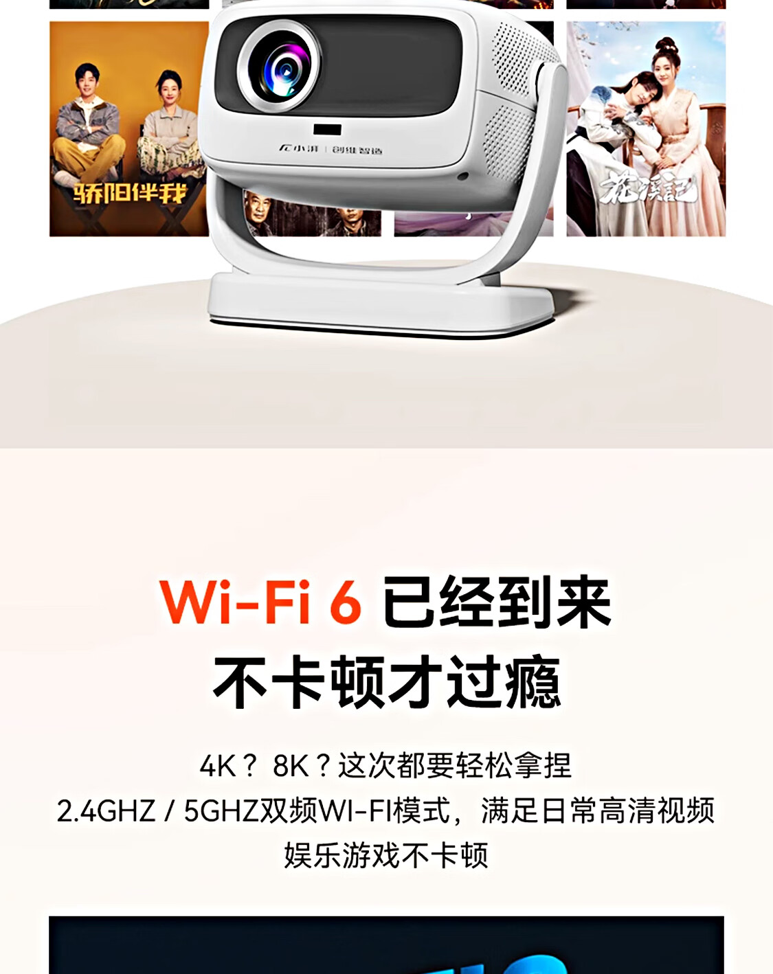小湃创维小湃投影仪家用家庭影院4K超高清白天手机电脑便携3d投影办公卧室客厅小型一体机电视 创维云台A8-4K解码高流明-HDMI连接